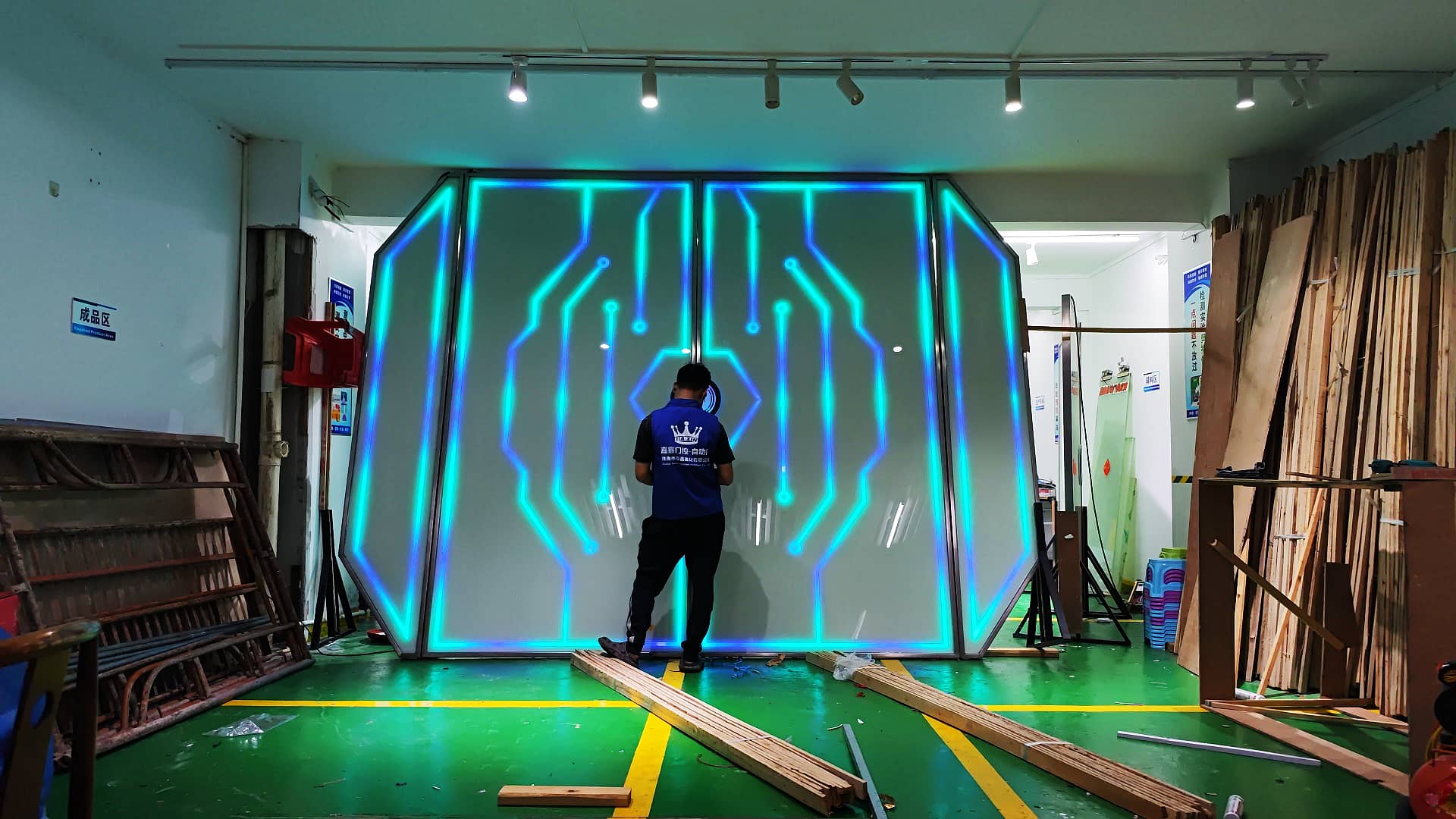 网红门定制 炫酷掌纹灯光感应门